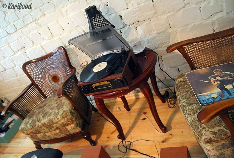 Вечеринка «Винил, вино и морковные пироги» в кофейне «На Станиславского» — это встреча с бывшими виниловыми изгнанниками, маминой молодостью, платьем с отрезной талией, скрежетом тонкой иглы и папиной квадратной сумкой «Адидас». Это даже не винтаж, а игра в него.