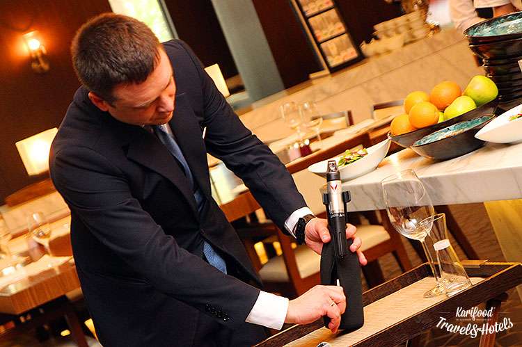 Кроме того, ресторан Park Kitchen подхватил полезную моду на коравины и тоже обзавёлся этим, безусловно, полезным девайсом, который позволяет наливать вино из закупоренной бутылки, не повреждая пробки и не окисляя вино.