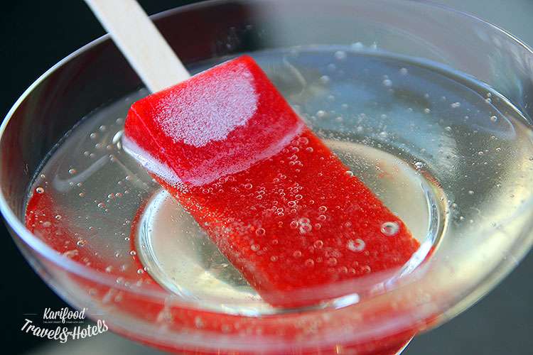 Что до любимых «пузырьков», то к просекко в Park Kitchen подают фруктовый смузи-лёд, который можно или полностью растворить в бокале с игристым или съесть, как самостоятельный десерт. А к бокалу шампанского здесь подают особенный комплимент — ягодный сорбет в вафельном стаканчике, который внутри проглазурирован чёрным шоколадом. В общем, не лето, а сплошной праздник сладкоежек!