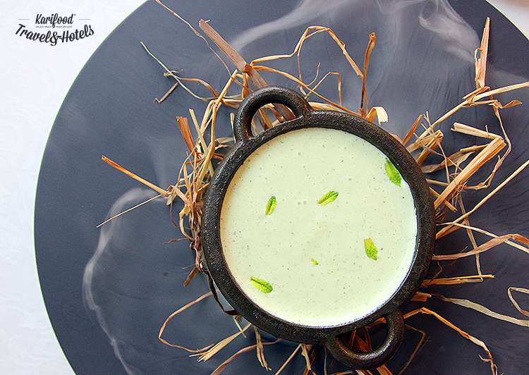 Яркий пример — классический и неизменный зелёный суп (мята и огурец) от Стефана, который каждый год появляется в меню к открытию террасы и запуску летнего меню. Теперь его подают в керамической плошке на сене в клубящихся парах жидкого азота на чёрной сланцевой «шляпе».