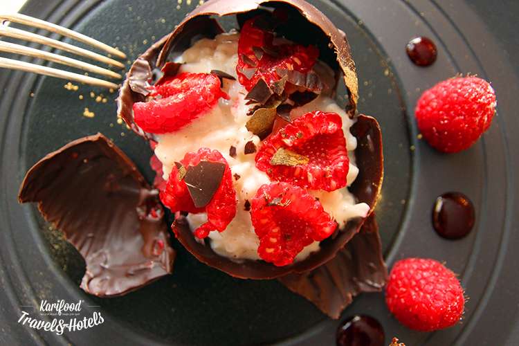 Десерты Comme il Faut в новом сезоне просто таки обязательны к дегустации. Шоколадная сфера с малиной подхватывает тему игры с фактурами: в сфере из гладкого и глянцевого шоколада — рыхлое и сладкое ванильное ризотто с кисло-сладкой малиной и ягодным соусом.