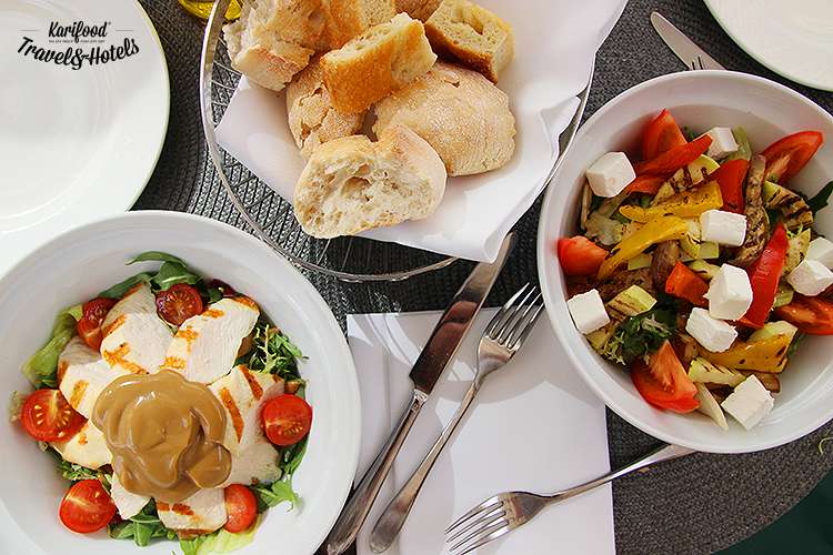 Последнее вполне может заменить и обед, и десерт. Кроме того, в меню террасы целых шесть свежих салатов с обилием зелени, ароматного оливкового масла и душистой рукколы.