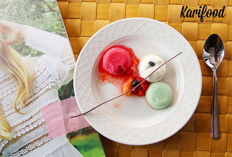 Идея заморозить ягоду в самом сорбете оказалось не самой удачным решением — сорбет в тарелке тает быстро, в то время, как ягода остается холодной и твёрдой, и при этом меняет свою фактуру и вкус — не в лучшую сторону.