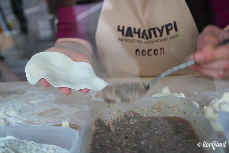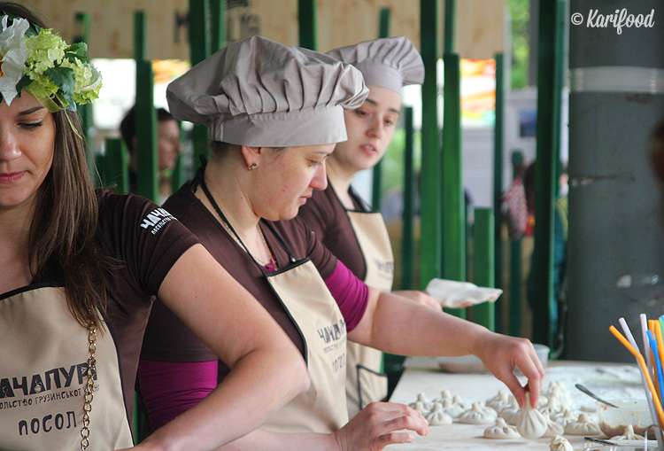 Потрясающие грузинские хинкали от ресторана Чачапури, которые лепили и варили тут же, при гостях, щедро сдабривали перцем и подавали с чачей — лучший пример братской дружбы и настоящей–пренастоящей еды.