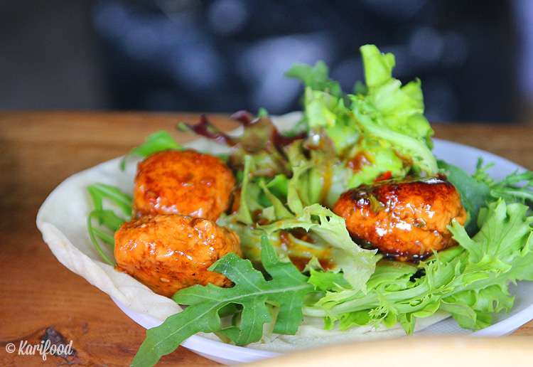 Усладой для глаз и желудка стали митболы с горой зелёной зелени на пите от Михаила Марчука из Touch (не могу понять одного, почему ребята в Touch с таким завидным упорством продолжают работать на Уличной еде без перчаток? Какая религия запрещает им их надевать?)