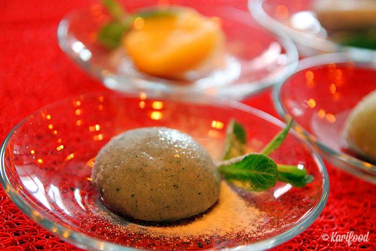 В начинке традиционно японских моти — сладкая красная фасоль адзуки или молотые листья чайного дерева, такие сладости и не сладости вовсе, у них приятный освежающий вкус, они идеально сочетаются с травяными отварами или ячменными настойками, а вот европейские десертные напитки — кофе или чай напрочь перебивают их едва уловимый, неяркий и нежный вкус.