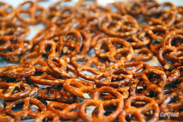 Своей золотистой и гладкой корочкой претцель обязан раствору соды, в который тесто опускают перед выпеканием (примерно 4 ст.л соды на литр воды). В результате реакции между кислотой и сахаром под воздействием температуры претцель приобретает свой фирменный вид и цвет. В Средние века помимо монастырей лишь отдельные цеха пекарей имели право выпекать претцели — их производство сурово регламентировалось, а их нелегальная выпечка так же сурово каралась.