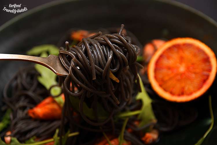 В серии рецептов «Итальянский ужин» от Karifood и ТМ Премія готовим ещё одну пасту — чёрные капеллини с креветками в вине с мёдом, заправленные сладким соком сицилийских апельсинов.