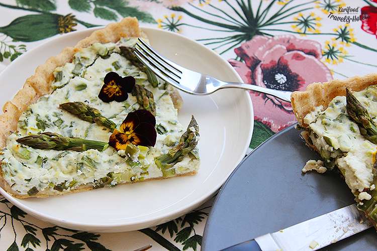 Варіант начинки для любителів більш яскравих та насичених сирів: замість рікоти візьміть 250 грамів сиру bleu d’overgne із пліснявою та 100 грамів козячого твердого сиру. Цибулю і спаржу змішайте із пліснявим сиром, а козячий сир натріть на дрібній тертушці і посипте ним пиріг перед відправкою у духовку.