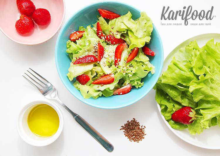 Клубника — ягода универсальная и отлично подходит для салатов, холодных несладких супов, не говоря уже о десертах. Заправьте салат интересным маслом — рыжиковым, конопляным или льняным, чтобы не только усилить вкус, а и поднять витаминную ценность блюда до заоблачных высот!