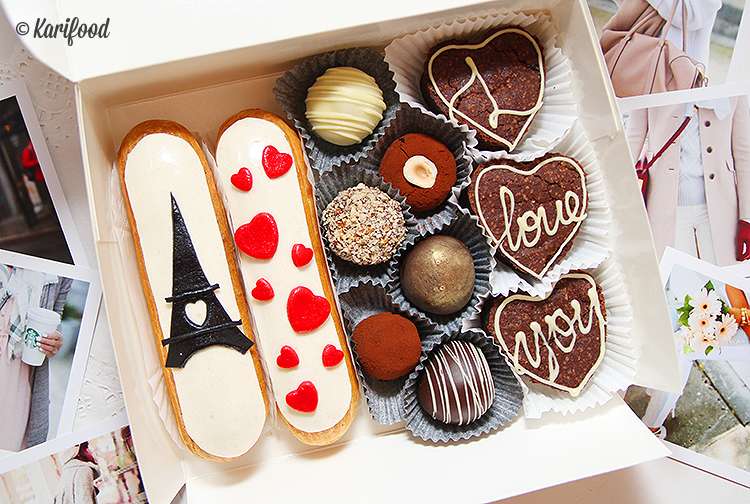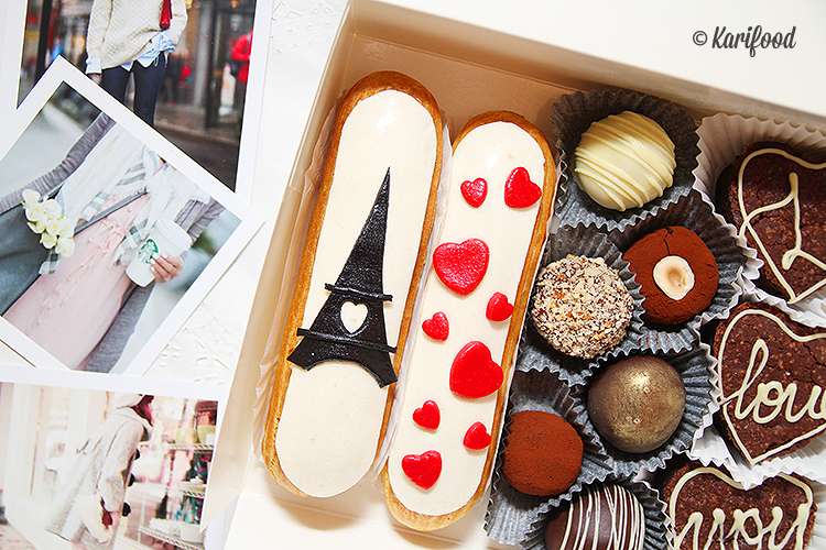 Мини-кондитерская Musse Confectionary подготовила Дню Св. Валентина коробочку сладостей «Tour Eiffel Mix»*, упаковав в нее, помимо двух эклеров, шести увесистых шоколадных трюфелей и трех кусочков брауни, мечты о Париже, утренних багетах и завтраках на набережной Сены.