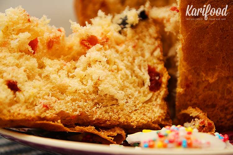 Традиционному пасхальному куличу с изюмом и фруктами место, как и на обеденном, так и на сладком столе. Дружит с бужениной, заигрывает с вином, отлично вписывается в компанию макаронс и бискотти!