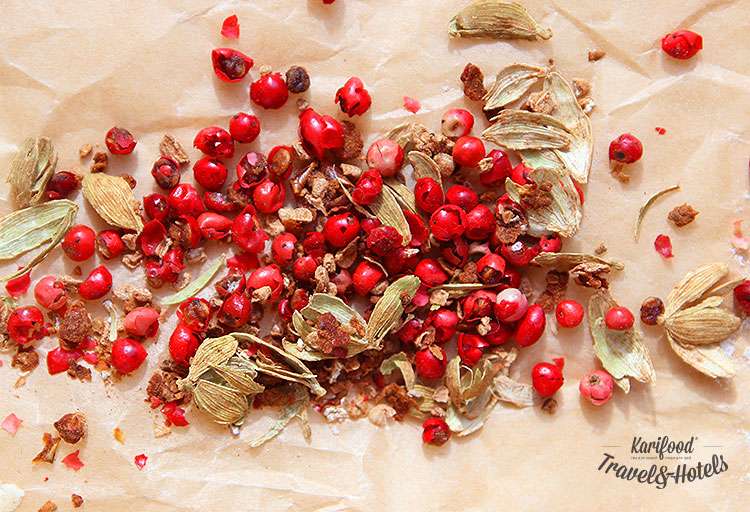 Чайная ложка розового перца, 5-6 зёрен кардамона