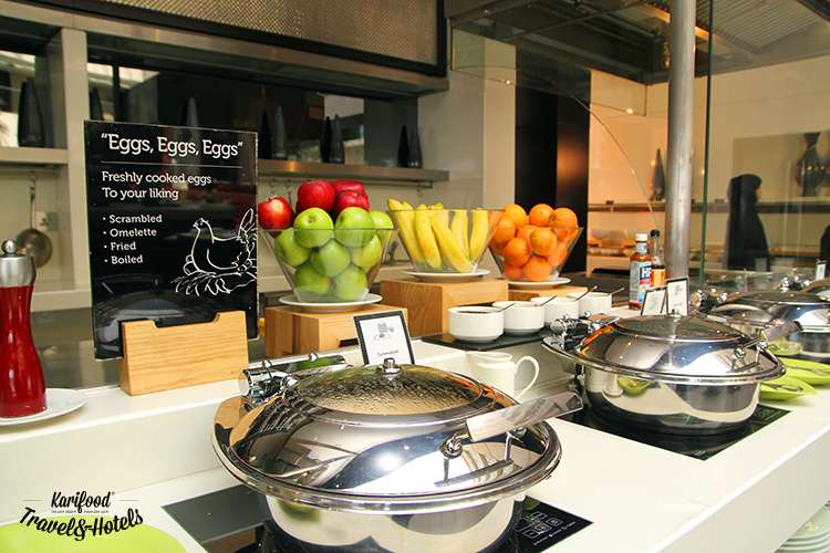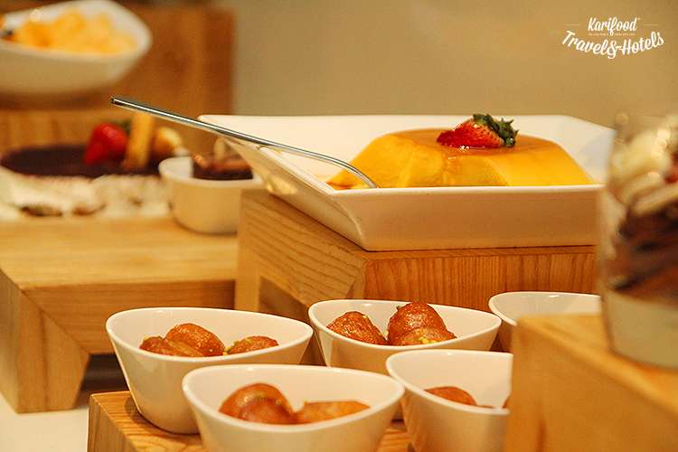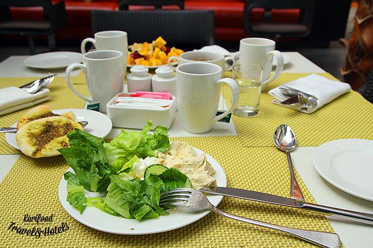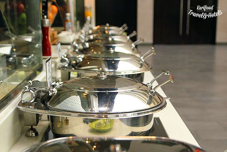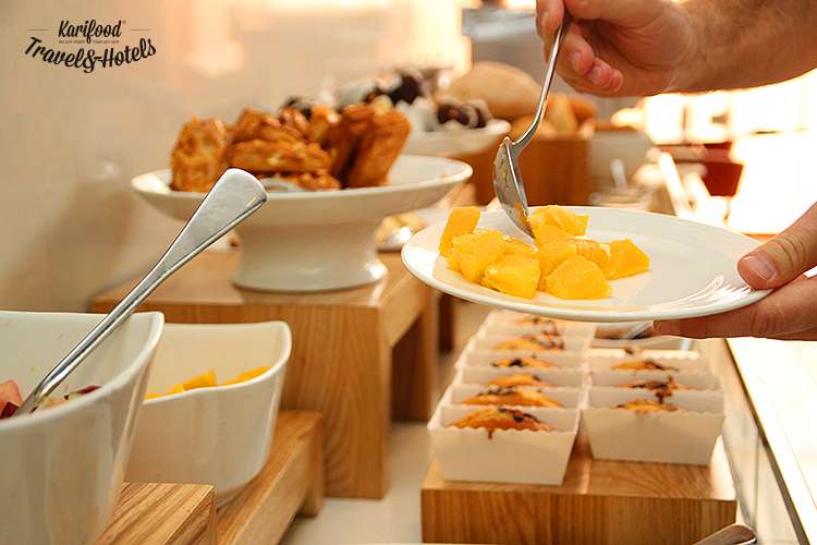 Уже с самого раннего утра повара жарят баранину, омлеты, креветок, рыбу, готовят ризотто в шайбе пармезана, выкладывают на витрины буфета деревянные подносы с выпечкой, финиками (работники отеля сами выращивают их и собирают с небольшого пальмового участка, прилегающего к территории Centro), восточными сладостями и десертами.