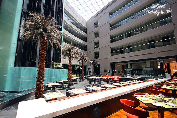 Centro Sharjah Hotel проложил путь к сердцам постояльцев через кухню — этажи с номерами выстроены по периметру главного ресторана отеля в обрамлении пальм и фонтанов.