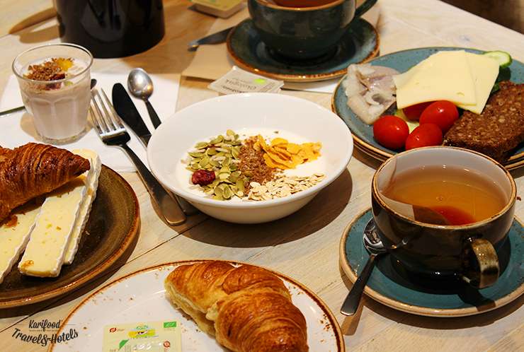 Кстати, о завтраке. Датская классика comfort food, которая включает несколько видов ржаного хлеба (о, этот датский хлеб!), баночки с сельдью, сыры, сытный пикантный паштет из свиной печени, сливочного масло, домашнее варенье и горы выпечки.