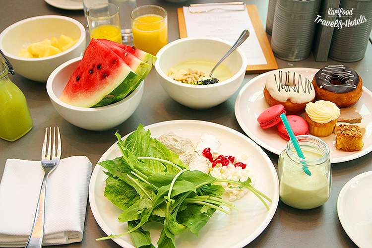 Если вечером приналегли на бабушкин торт, то утром в Chef’s House, где подают завтраки, приналягте на свежую зелень и фирменные рэдиссоновские смузи — не знаю, что с ними творят повара, но это самые вкусные овощные и фруктовые смузи, которые мы нашли в Дубае!
