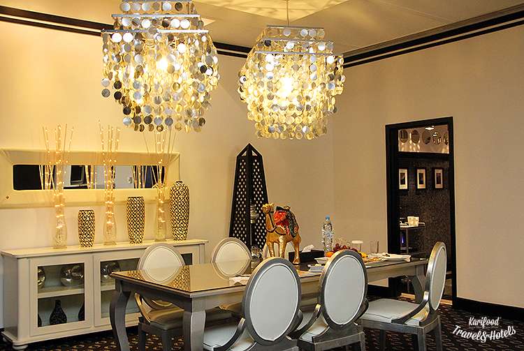 Radisson Blu Resort Sharjah встречает нас сказочными апартаментами с гардеробной комнатой, vanity table, сказочными люстрами в каждой из трёх ванных комнат (я могу жить в такой ванной, честное слово!), кухней, террасой, рабочим кабинетом, салоном и спальней, размером с небольшой стадион.