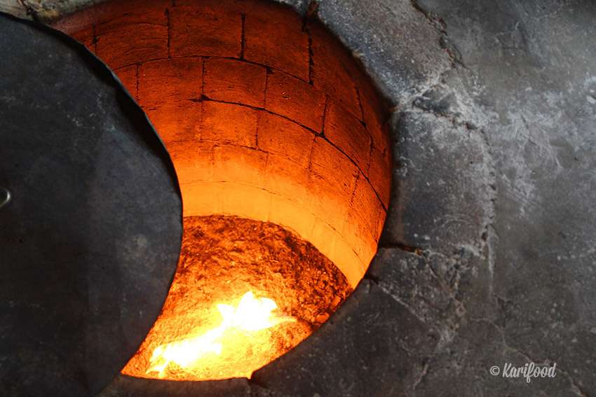 Приготовление хлеба в закрытой земляной печи имеет совершенно определенный исторический подтекст. Армения на протяжении всей истории своего существования находилась в кольце недружественных ей племен и народностей. Чтобы разожженный в степи или открытом поле огонь не привлекал внимания вражеских племен, люди стали рыть ямы в земле и топили их хворостом, сухой виноградной лозой или кизяками, сверху такую яму накрывали деревянным или железным настилом-крышкой, а внутри пеклись лаваши и томились горшки с арисой или кусками мяса.