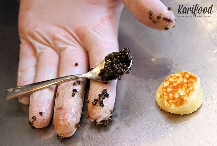 — Икру всегда подают охлаждённой, если же её ставят в объёмных икорницах на лёд, то от перепада температур икра может «поплыть». Такую икру «на льду» оптимально съесть за полчаса-час;
