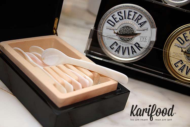 — Брать икру из банки лучше всего перламутровыми или серебряными ложками, оба эти материала — серебро и перламутр — не переносят бактерии и остаются чистыми, кроме того, не искажают вкуса самой икры.