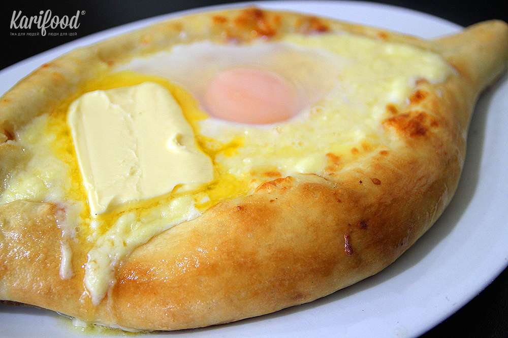 Аджарский хачапури представляет собой лодочку из теста с бортиками и начинкой из сыра, сырого яйца и брикета сливочного масла сверху. Аджарский хачапури едят только руками, предварительно перемешав вместе всё содержимое лодочки: сыр, яйцо и масло.