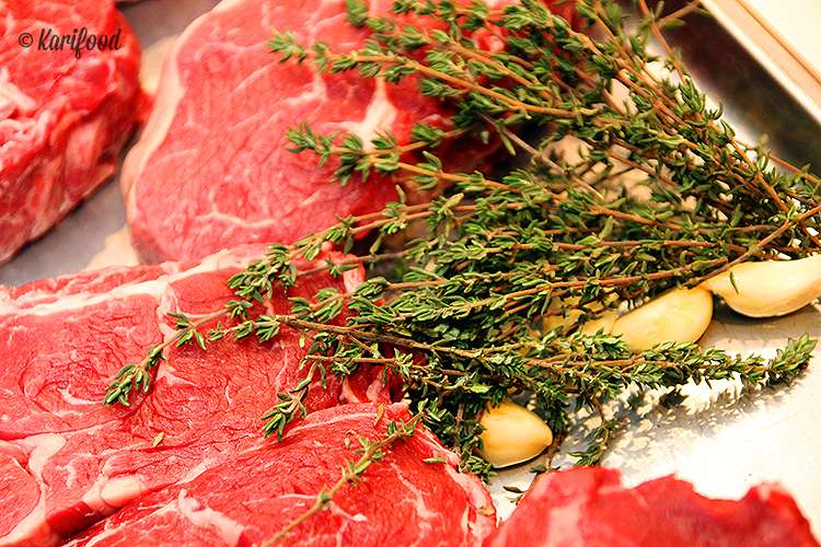 — Чтобы мясо сохранило сочность, перед жаркой куски должны полежать при комнатной температуре — от получаса до полутора часов. Смажьте куски мяса растительным маслом, добавьте веточки душистых трав, к примеру тимьяна, и дайте природе все сделать за вас;