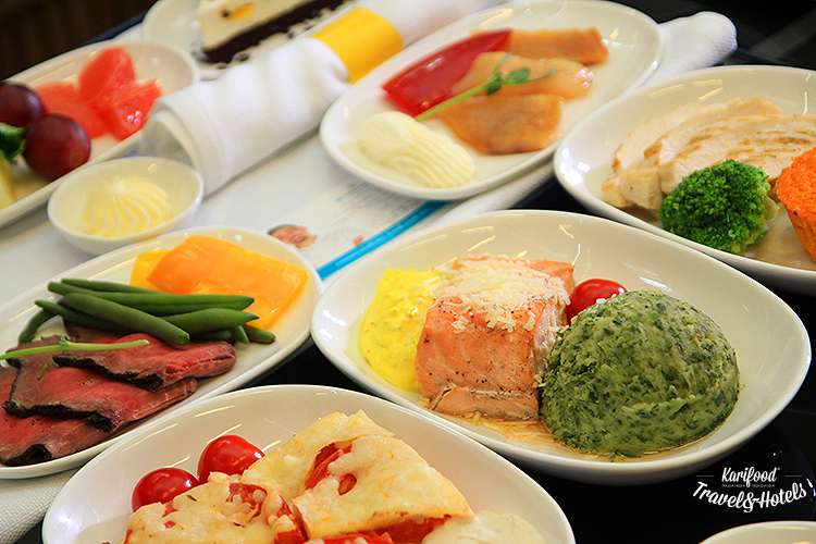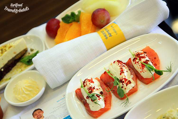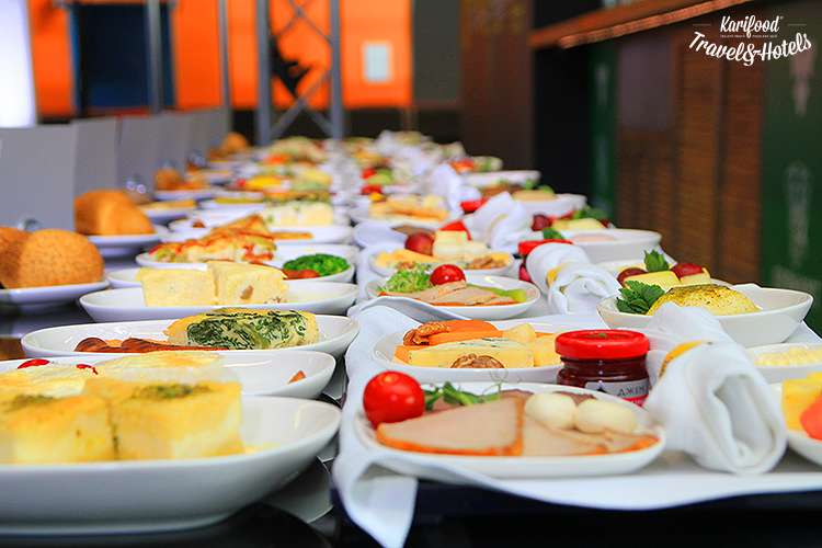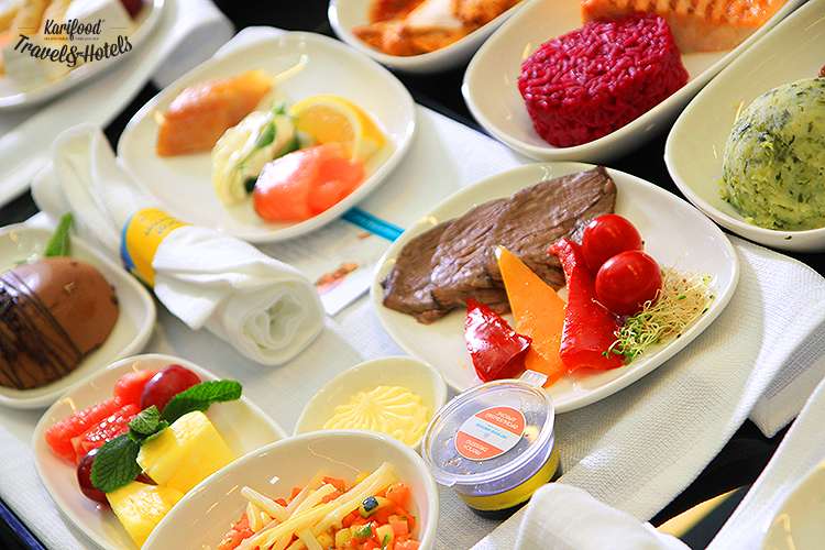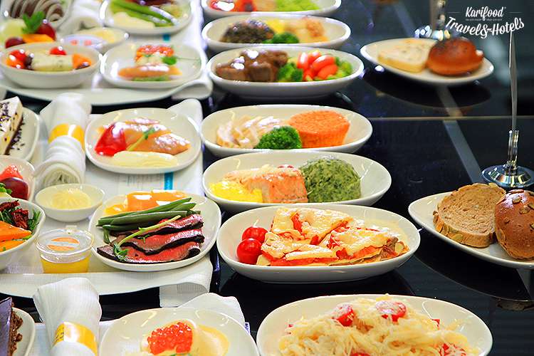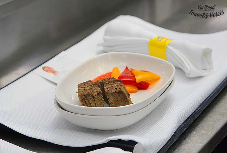 Сегодня шеф Андрей Морозюк кормит пассажиров медальонами из телятины, кабачковым фланом, киш-лореном, свежими салатами с моцареллой и вялеными томатами (это мой личный фаворит!), террином из говядины под соусом из красного вина, иерусалимской кадафой.
