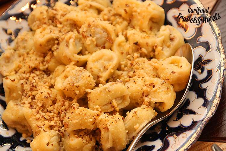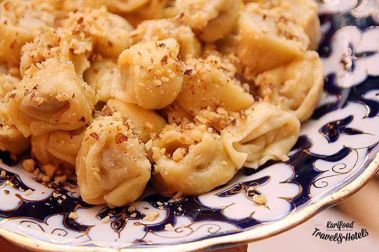 Такие же пельмешки, но уже без бульона, заправляют сливочным маслом, обильно посыпают тёртыми грецкими орехами и подают на стол как основное блюдо — татар аш. Главный секрет этих пельмешек, по словам Заремы, в тесте — его замешивают на молоке и яйцах, тогда как тесто для мантов, к примеру, готовят на воде, муке и растительном масле.
