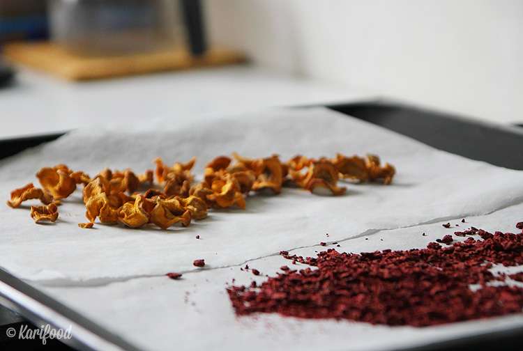 За спиной у Антона на противне остывают тонкие высушенные ломтики свеклы, рядом точно такие же ломтики сушёной моркови — всё это заготовки для красителей глазури.