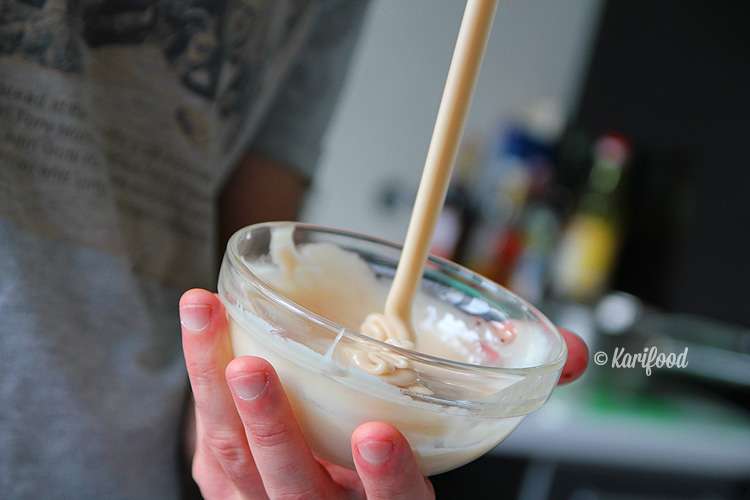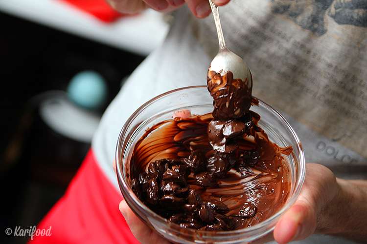 Наступает черёд шоколадной глазури. Антон ставит на стол миску с тёплой шоколадной глазурью и начинает окунать в неё эклеры. За этим процессом, кажется, можно следить бесконечно… Как можно в таких условиях удержать себя от соблазна открыть холодильник и угоститься всей этой глазурированной красотой? Загадка без ответа.