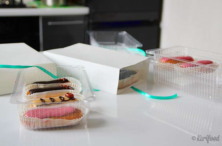 Крем равномерно и щедро заполняет собою пирожные, но не вываливается из них при первом же укусе, тесто правильное и достаточно тонкое, чтобы не забивать своим вкусом общее впечатление.