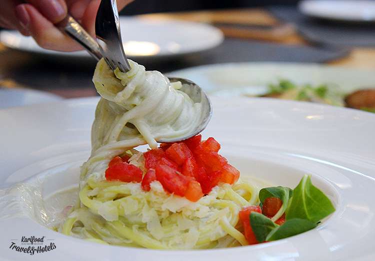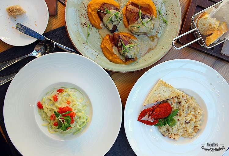 Меню он строит на сезонных локальных продуктах, разбавляя палитрой любимых деликатесов: трюфелями, итальянскими и французскими сырами, фуа-гра, морепродуктами и ракушками, и всё это в авторской интерпретации шефа.