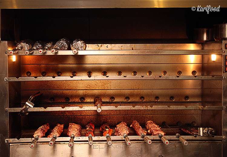 Каждый день в ресторане проходят два вечерних круга rodízio-ужинов: повара-гаучо (gaucho — латиноамериканский эквивалент ковбоя) эффектно прогуливаются по залу с огромными вертелами и нанизанными на них куриными бёдрами, кусками свинины и сочащейся жиром бараниной и предлагают гостям, оплатившим rodízio, поочередные 14 подач с гриля (не все из них мясные, есть и хлеб, и овощи-гриль и даже карамелизированные бананы).