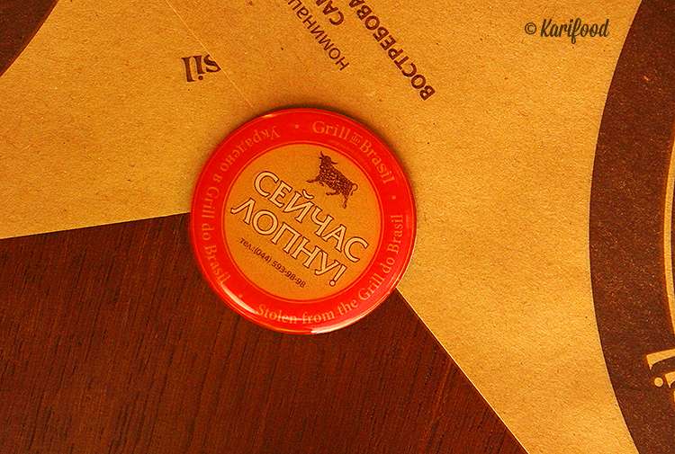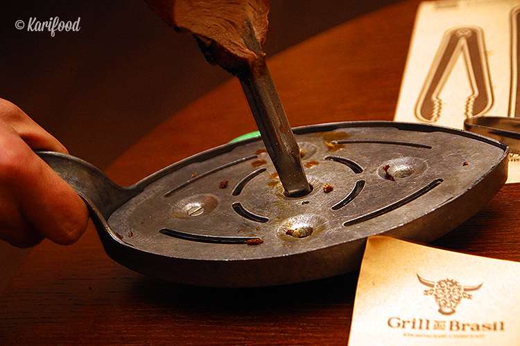В Grill do Brasil вечер-rodízio начинается по расписанию, первый ужин в семь часов вечера, второй — в девять. На столах возле каждого гостя лежат специальные фишки. С одной стороны зелёная надпись «Хочу есть!», с другой — красная «Сейчас лопну!».