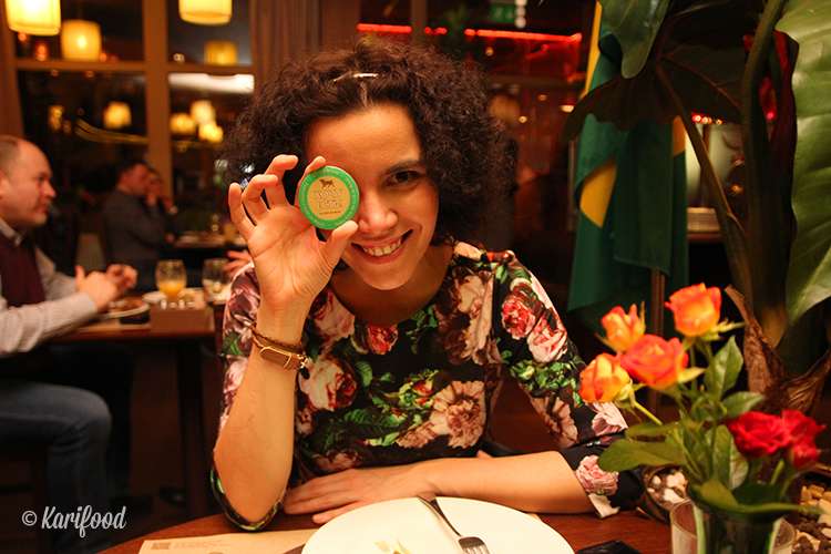 Эта фишка — сигнал для гаучо: когда она лежит красной стороной кверху, то официант с мясом проходит мимо вашего столика, если зелёной — то обязательно предлагает вам отведать мясных закусок с пылу-жару.