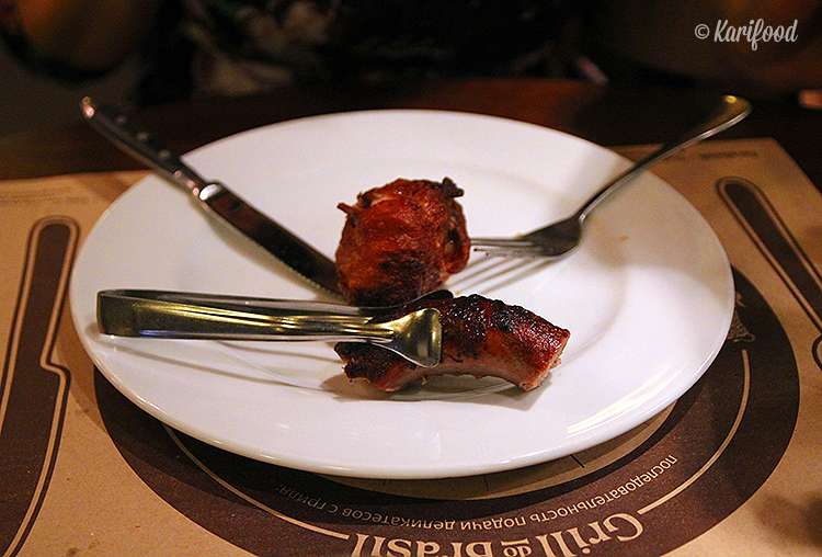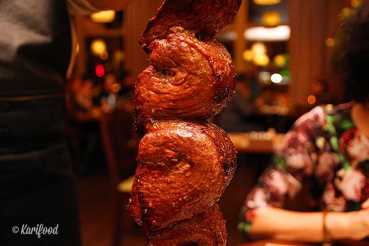 Традиционно в ресторанах с услугой rodízio ужин начинается с подач более дешёвого мяса. И если вы не споткнулись о соблазны салат-бара, существует большой риск сдаться на первом же вынесенном в зал вертеле: тут же объесться куриных крылышек и дальше если и продолжать ужин, то «через не могу».