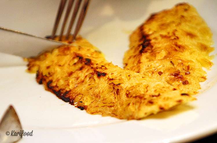 Во время ужина rodízio вам не всё время будут предлагать мясо — примерно через каждые 3-4 мясных подачи приносят что-то из «перебивок» — чесночный хлеб-гриль, запечённые карамелизированные бананы или овощи-гриль.