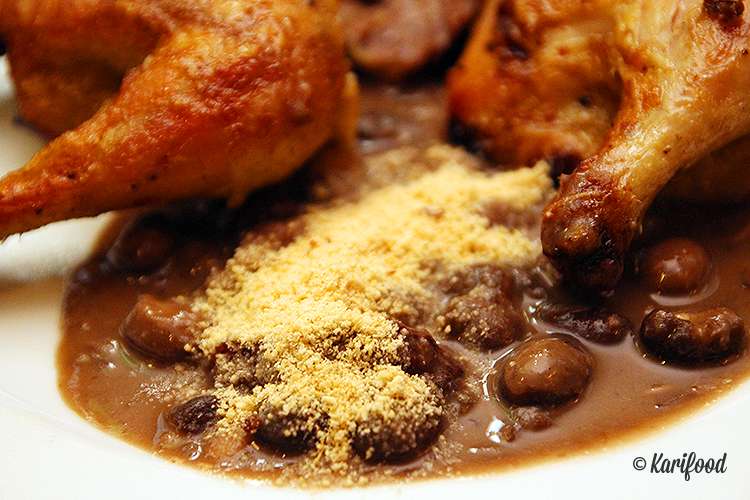 Подсказка третья: если мясо, которое вам подали, слишком жирное, присыпьте его фарофой, маниоковой мукой (огромная миска с ней стоит возле горячих горшков с фейджоадой на салат-баре) — она впитает лишний жир, после чего саму муку можно аккуратно счистить ножом с мясного кусочка.