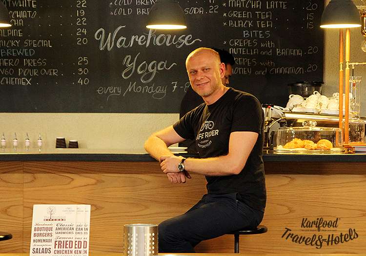На гигантской выставке фуд-индустрии Gulfood в корнере Мирового чемпионата по джезве, где толпятся сотни бариста, обжарщиков, специалистов по кофе-машинам и прочих кофе-людей со всего мира, мы ненароком знакомимся с сидящим рядом с нами молодым человеком, вместе с которым болеем за украинского чемпиона. Слово за слово, и вот мы уже сидим в просторной машине, мчимся по автостраде, объездным путем минуя восьмиполосные дубайские пробки – Дима везет нас в кофейню Café Rider, которой управляет вот уже несколько лет. Сам он — победитель украинского национального Чемпионата «кофе-алкоголь» 2009 года, а теперь ещё и чемпион-бариста Эмиратов 2014 года.
