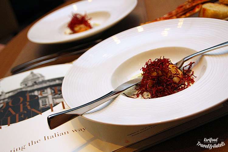 Шеф Антонио Битетто не просто уточняет, едим ли мы мясо. Допытывается до мелочей: а любим ли мы рыбу? А моллюски? Какие именно? Хотим ли попробовать пасту? Хотим отобедать по меню или позволим ему приготовить для нас что-то из своих фирменных эксклюзивов, которые он обычно готовит на вечерах chef’s table?