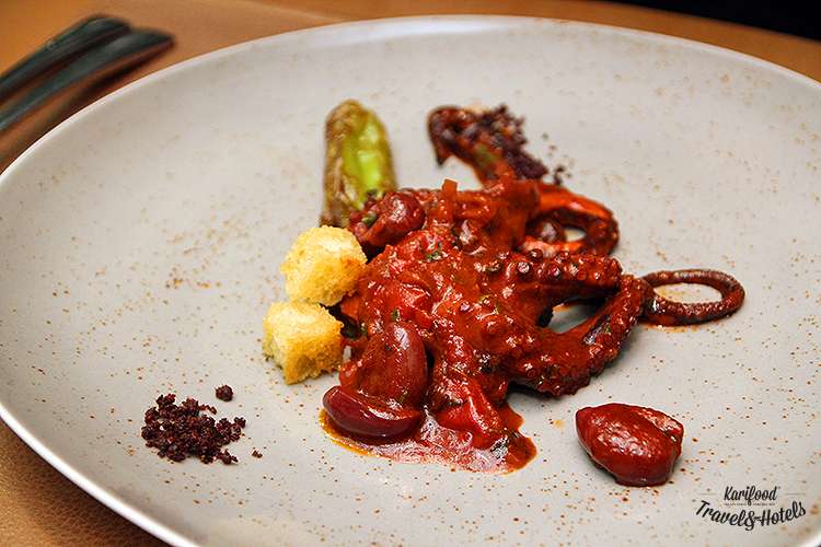 Но этот осьминог совершенно точно не вязнет во рту, как неспелая хурма, и его хочется растянуть на целую вечность, несмотря на то, что к нашему столику уже направляется официант с тарелками, над которыми поднимается пар.