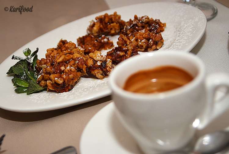 Десертная карта — маленькая и скромная: чурчхела, мацони с мёдом, гозинаки и наполеон, который, хоть и смотрится довольно странно в меню грузинского ресторана, всё-таки это именно тот торт, который чаще всего готовят на праздники в Грузии.