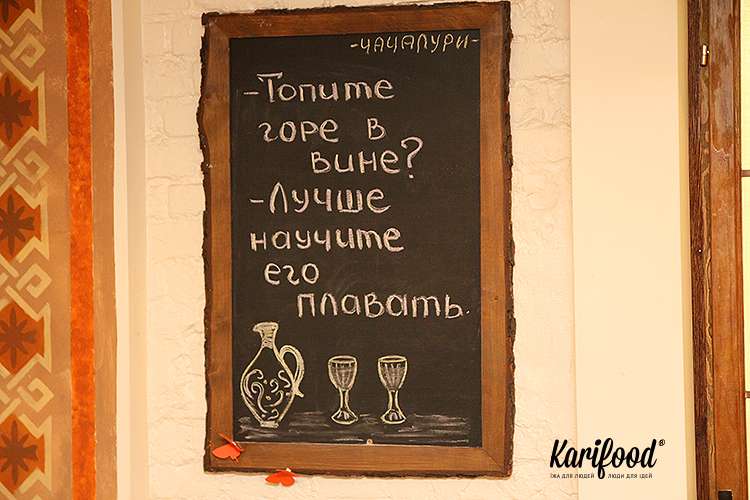 Это удачно схваченный и пересаженный на украинскую почву формат тех вкусных, нетуристических заведений Грузии, тайные тропы к которым знают лишь местные жители, и куда редко захаживают туристы, на долю которых чаще перепадают пафосные, богатые, злато-люстровые рестораны или совсем уж грубая, зато колоритная аутентика хинкальных и хачапурных.