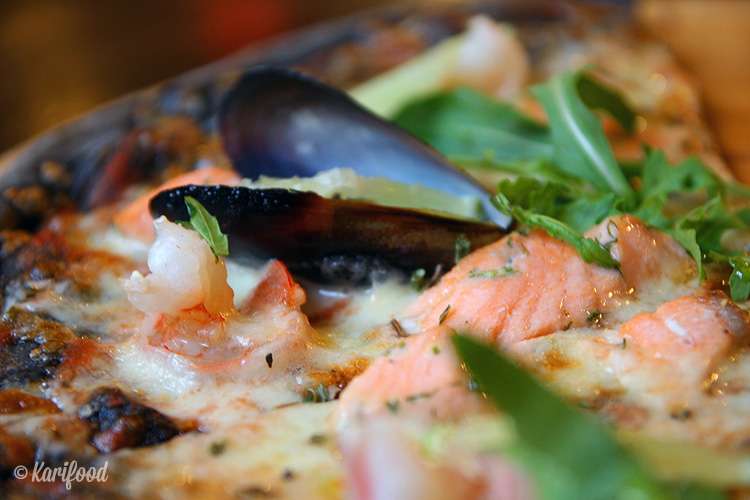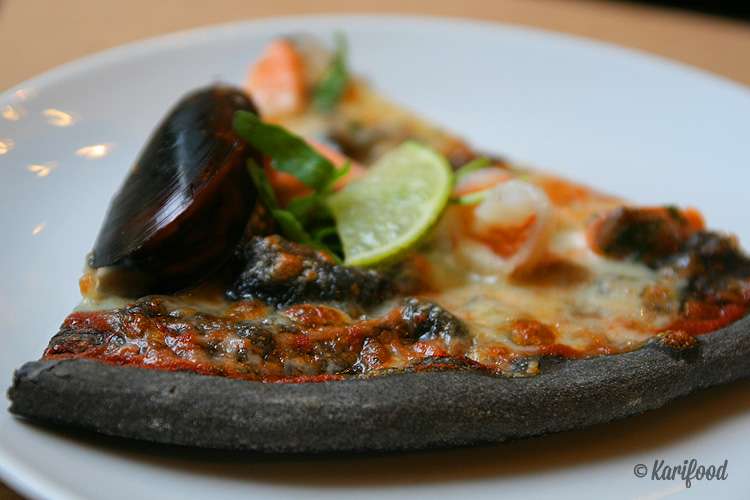 — пицца на чёрном тесте с морепродуктами — очень оригинальна и вкусна, её щедро посыпают морепродуктами, от этой пиццы веет Лигурийским побережьем, рыбацкими поселками и летом;