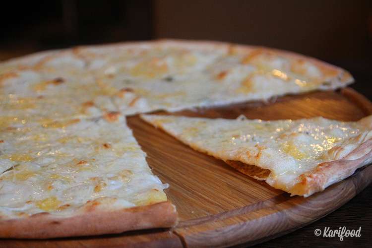 Когда вам приносят на стол подставку с огромным хрустящим ароматным колесом с горячим сыром, то на мгновение может показаться, что осилить её по плечу лишь полному составу «Ювентуса», но затем как-то незаметно пицца исчезает во рту, и на душе делается очень уютно, тепло и сырно;