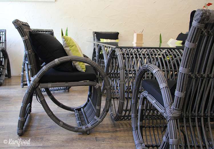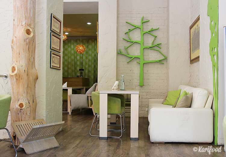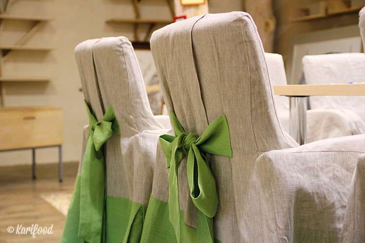 Здесь без преувеличения иная атмосфера, созданная тихой, едва слышной музыкой, мягкими, креслами, обтянутыми небеленым полотном, подушками и плюшевыми стульями. Здесь много света, тишины, внимания и уюта. Я замечаю, на каждом столике стоят стеклянные бутылки с водой.