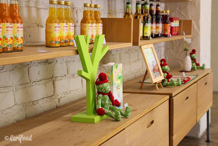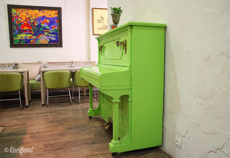 Под зеленым куполом бренда Glossary объединились органик-кафе, бутик с органической косметикой и продуктами питания, салон красоты, детский уголок, картинная галерея и зеленое пианино для музыкальных вечеров. Здесь нет строго разграничения зоны кафе и магазина — столики встречаются в самых неожиданных местах.