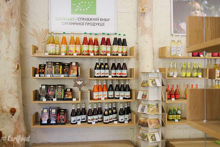 Украина внезапно открыла для себя преимущества собственного развития «органических» ферм, хозяйств, угодий. И сейчас итальянские, американские , французские органические продукты потеснились на полках в Glossary, по чуть-чуть уступая место украинским сырам, колбасам, мёду, варенью, сметане, кефиру, йогуртам.