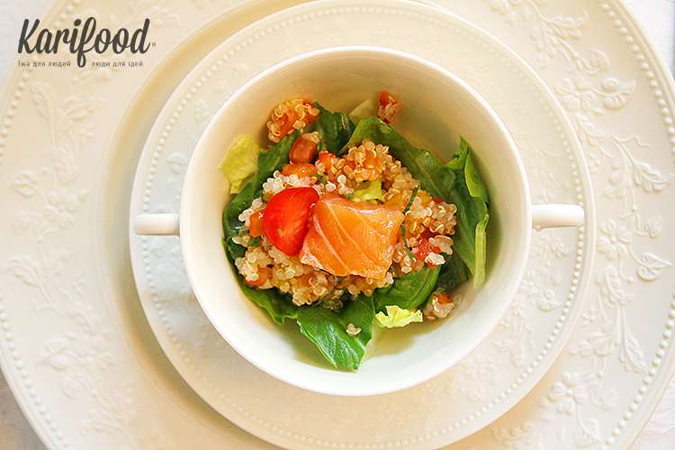 Киноа отлично сочетается с рыбой, не утяжеляет салат своим присутствием, к тому же, быстро насыщает и так же хорошо и быстро усваивается организмом.